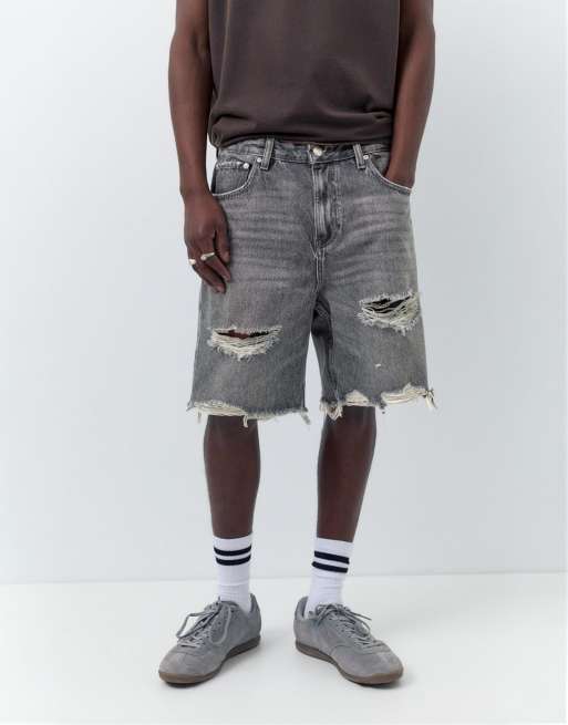 Pull&Bear Straight-leg denim bermuda shorts in dark grey