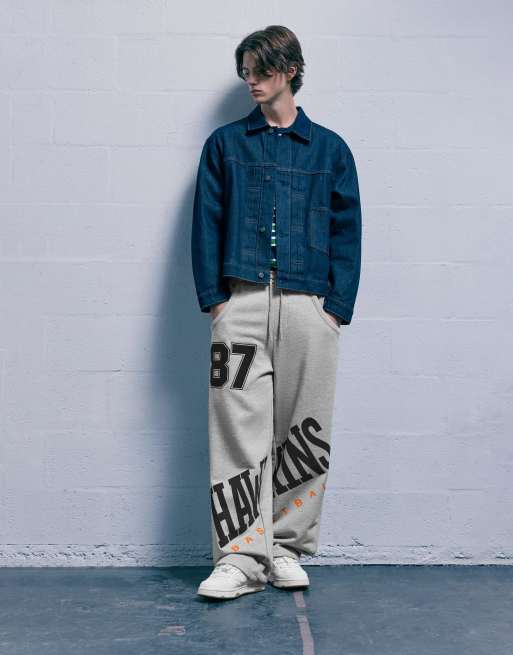 Pull&Bear Stranger things sweatpants in grey marl