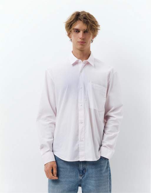 Pull&Bear Striped long sleeve shirt in pink