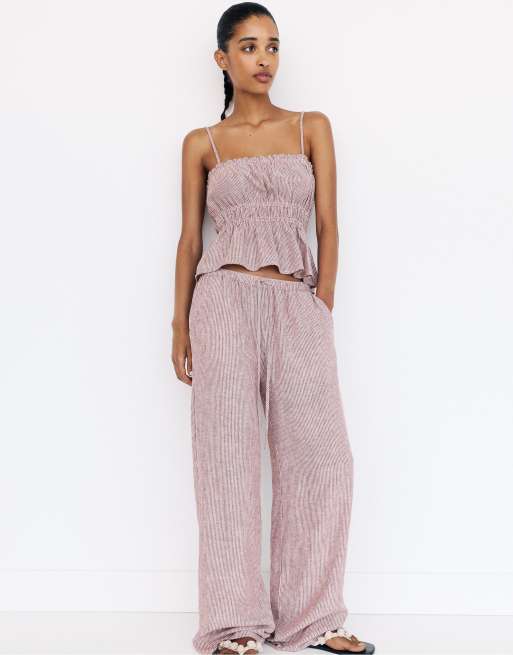 Pull&Bear Striped rustic sweatpants in burgundy