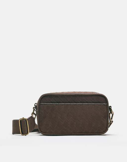Pull&Bear Stwd embossed crossbody bag in brown