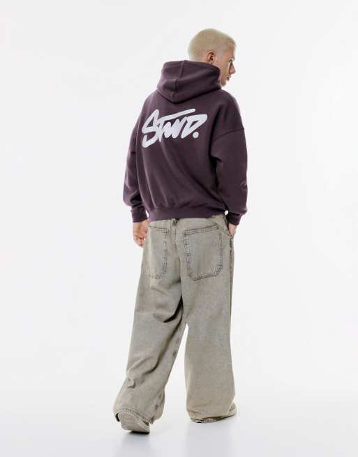 Pull&Bear Stwd embroidered logo hoodie in mauve