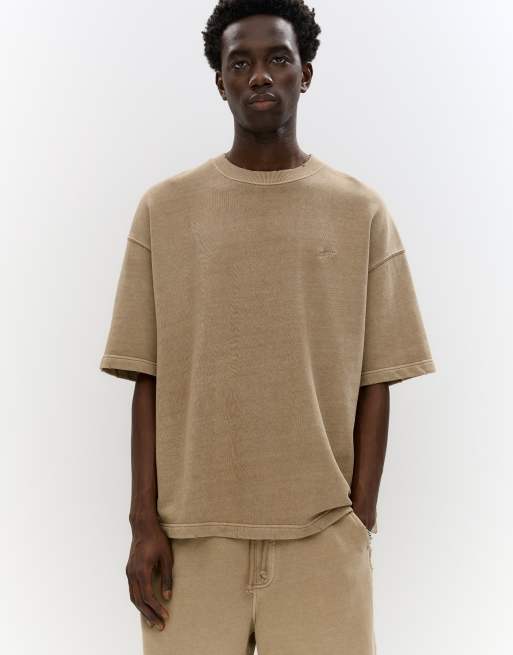 Pull&Bear Stwd short sleeve sweatshirt in sand