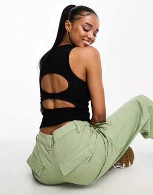 Pull&Bear tank top with open back detail in black