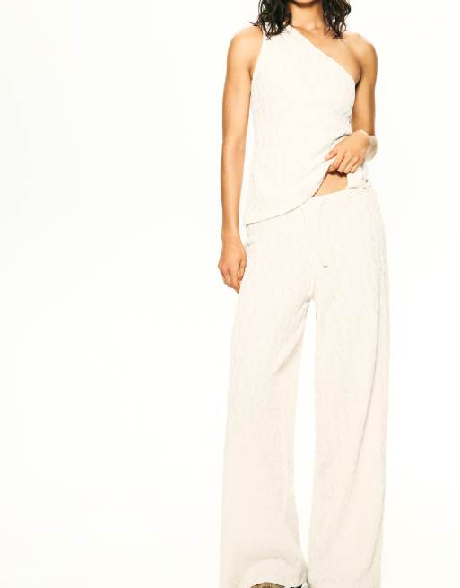 Pull&Bear textured loose fit trousers in ecru
