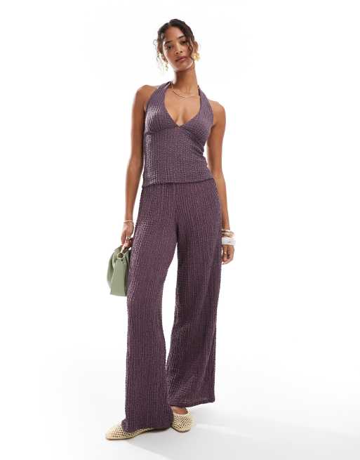 Pull&Bear textured wide leg trousers co-ord in purple
