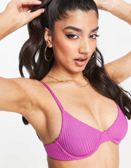 Pull&Bear underwire ribbed bikini top and bottoms co-ord in pink