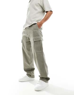 Pull&Bear wide leg contrast stitch cargo in khaki