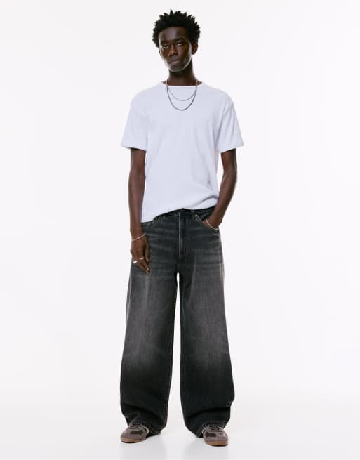 Pull&Bear Wide-leg jeans in faded black