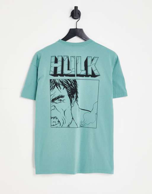 Pull&Bear x Marvel hulk back print t-shirt in blue
