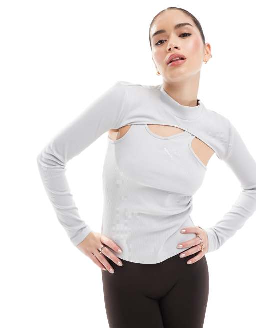 Puma Dare to midnight motion long sleeve top in cool light gray