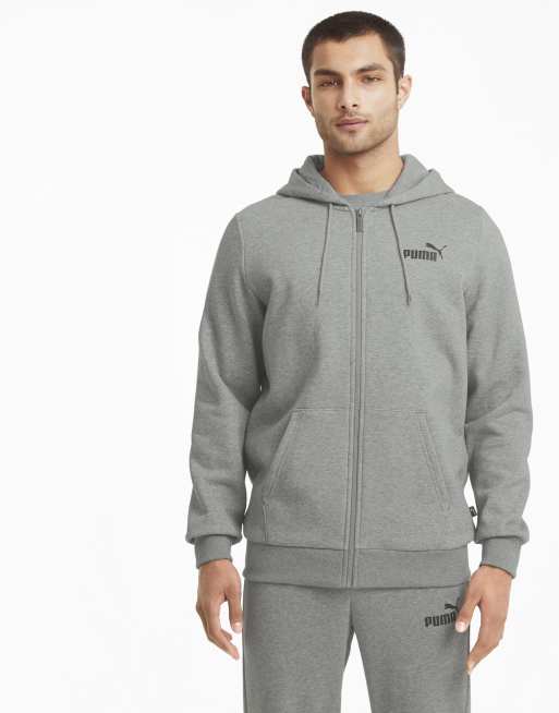 Puma Essentials full-zip logo hoodie in medium gray heather