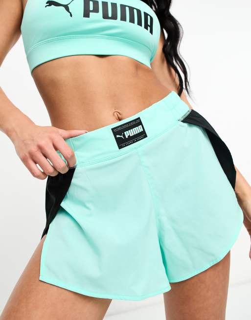 Puma Fit Fashion woven flow shorts in mint green and black