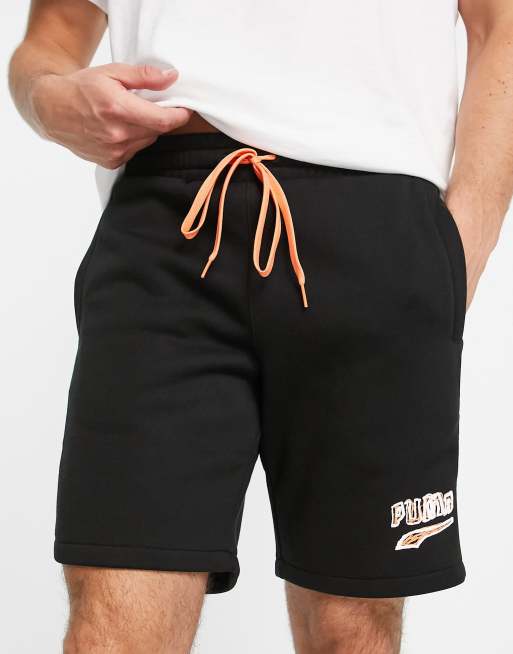 Puma logo jersey shorts in black and orange