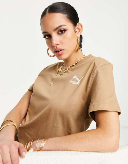 Puma padded shoulder t-shirt in tan brown- exclusive to asos