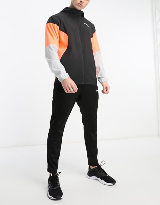 Puma Run lightweight jacket in black and orange
