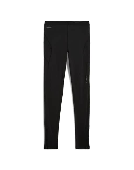 Puma Run microfleece tights in black tailored fit full length open bottom in puma black