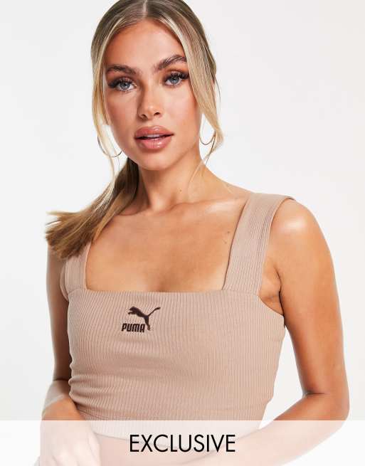 Puma square neck ribbed bralette in chanterelle