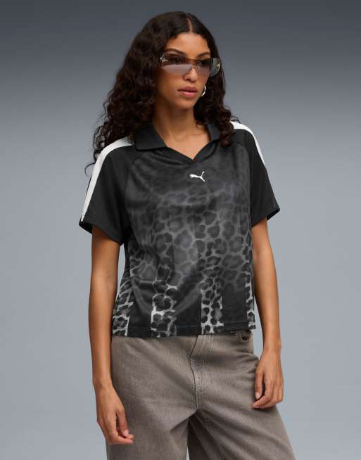 Puma T7 leo luxe relaxed football jersey in black relaxed shortsleeve crew neck in puma black-aop