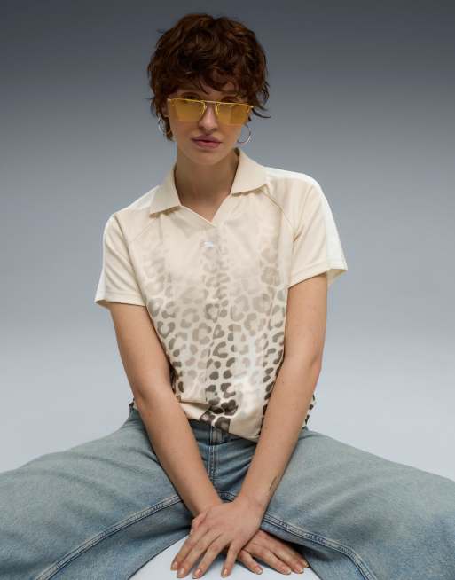Puma T7 leo luxe relaxed football jersey in white relaxed shortsleeve crew neck in alpine snow-aop