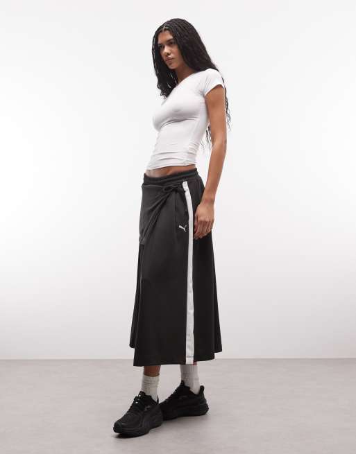 Puma T7 midi pleated skirt in black