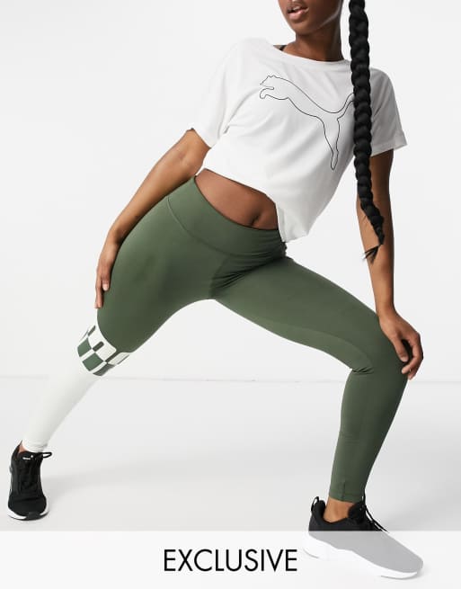 Puma Training leggings in thyme with grey logo panel exclusive to asos