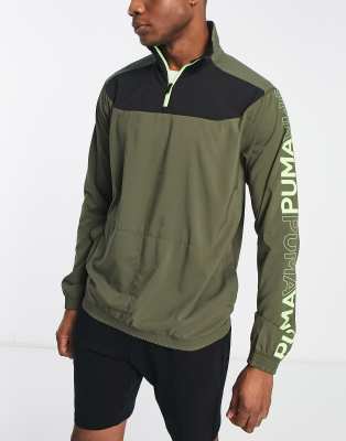 Puma Training woven 1/2 zip sweatshirt in khaki and black