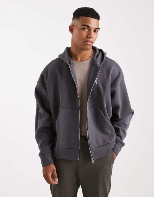 Puma Wardrobe Essentials boxy full-zip hoodie in dark grey