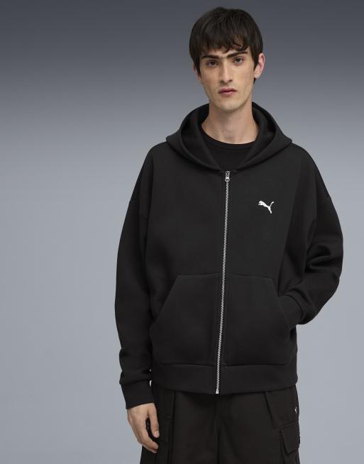 Puma Wardrobe Essentials boxy full-zip hoodie in puma black