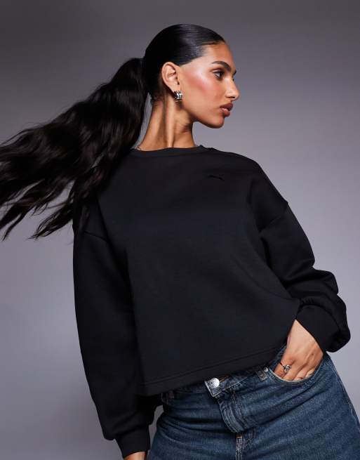 Puma Wardrobe essentials oversized crew neck sweatshirt in black