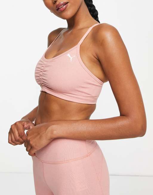 Puma Yoga Studio Foundation ruched low support sports bra in pink