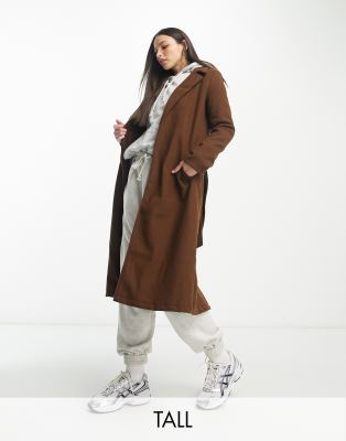 QED London Tall belted longline coat in chocolate brown