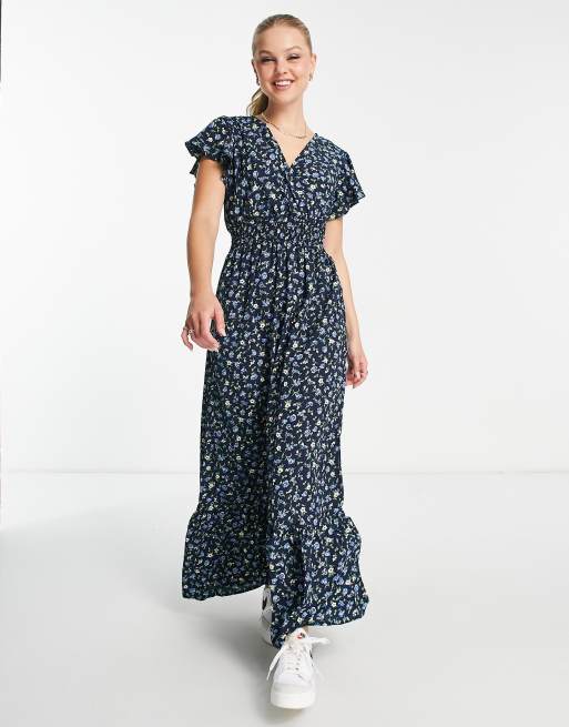 QED London cami strap tiered maxi dress in pink floral print