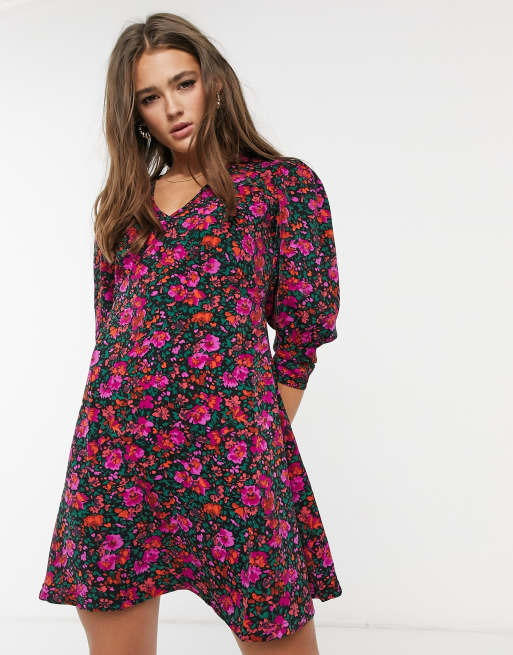 QED London puff sleeve mini dress in floral print