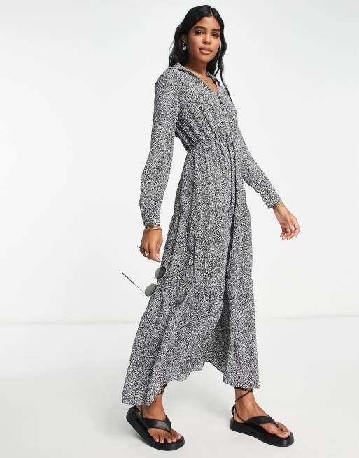 QED London tiered maxi dress in leopard print