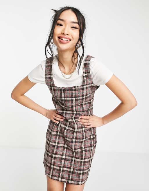 QED London tweed mini dress in brown check