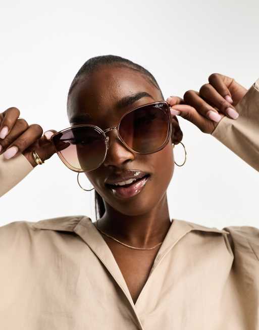 Quay flat out cat eye sunglasses in champagne and ivory