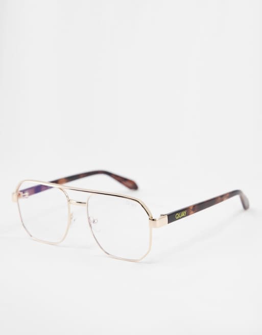 Quay Take It Back womens navigator blue light glasses in gold