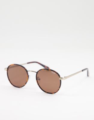 Quay Talk Circles round sunglasses with polarised brown lens in tortoise shell