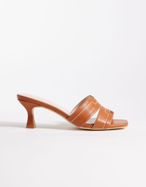RAID Wide Fit Clydie kitten heel mule sandals in tan