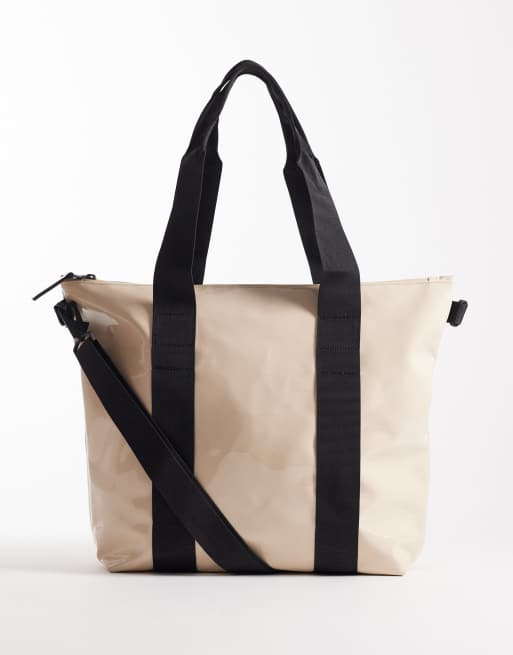 Rains 14160 waterproof mini tote bag in off white shine