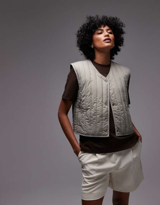 Rains Banja crop quilted liner gilet in light khaki