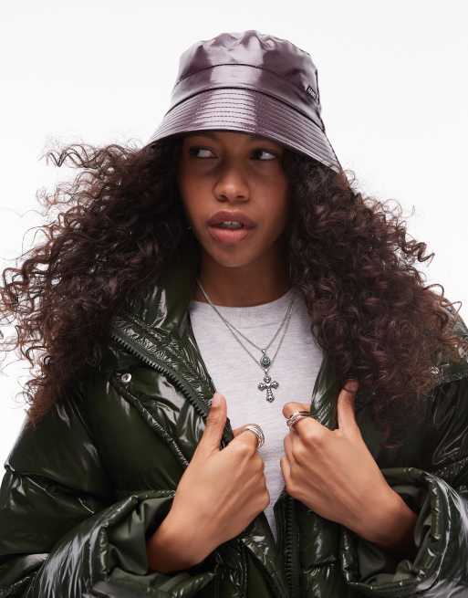 Rains waterproof bucket hat in burgundy shine exclusive to asos