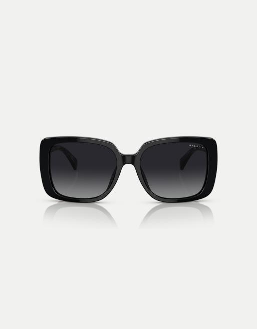 Ralph Ra5298u rectangle polarised sunglasses with grey lens in shiny black