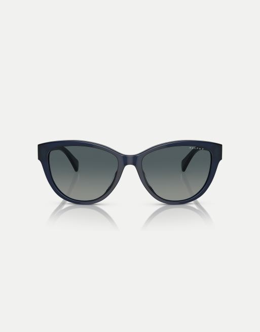 Ralph Ra5299u oval polarised sunglasses with blue lens in shiny opal blue