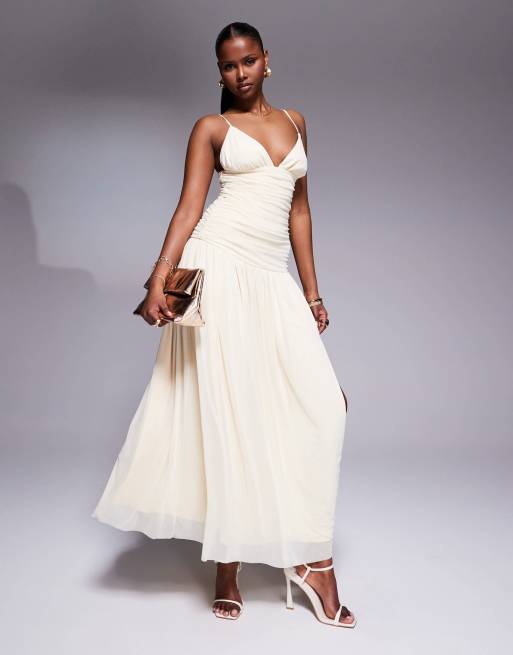 Rare London slinky drape detail dropped waist cami dress in cream