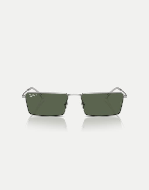 Ray-Ban Emy rectangle polarised sunglasses with green lens in silver