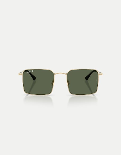 Ray-Ban Idan square polarised sunglasses with green lens in pale gold