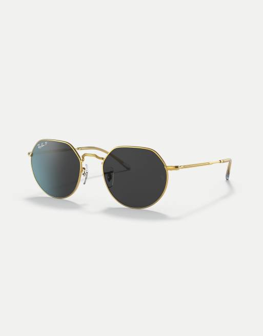 Ray-Ban jack irregular polarised sunglasses in gold with black lens in legend gold
