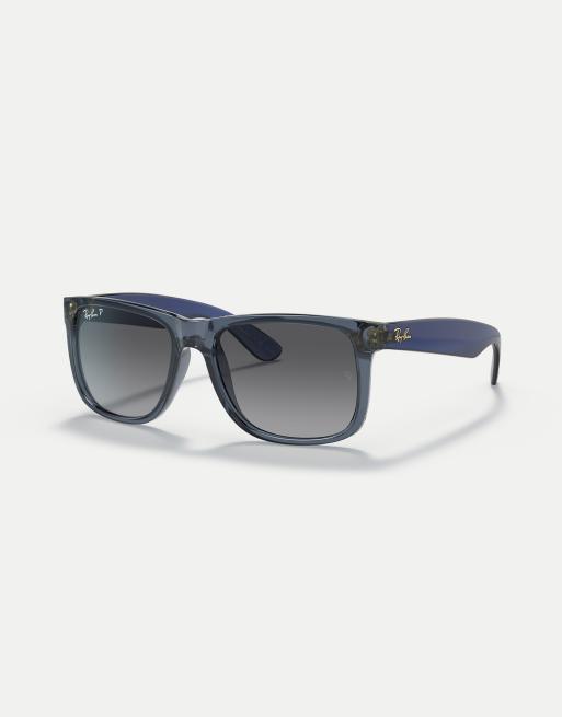 Ray-Ban justin classic square polarised sunglasses in blue with grey lens in transparent blue